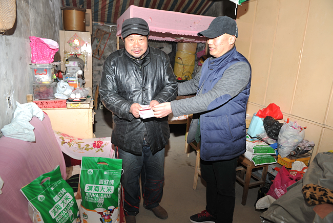 原来,陆同林是农场转岗职工,通过自谋职业,从事个体经营业务。有着浓厚军垦情结的他,在两天前特地找到臧成龙,想通过他了解,并在年前资助两户贫困户的想法。