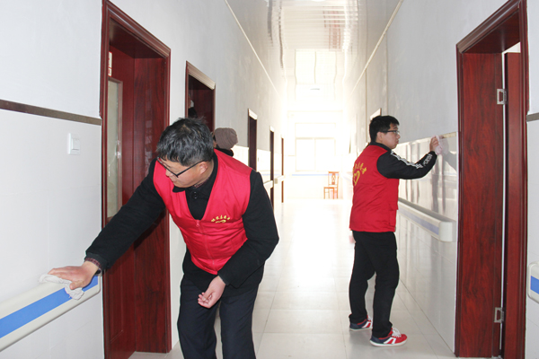 3月5日是全国第55个“学雷锋纪念日”,为弘扬“奉献、友爱、互助、进步”的雷锋精神,提升志愿服务理念,�港农场来自社区、居委会、职工医院的志愿者们走进农场养护院开展学雷锋活动。他们擦窗、擦门、擦墙,为老人们测量血量、理发、剪指甲,将春的气息带到养护院。