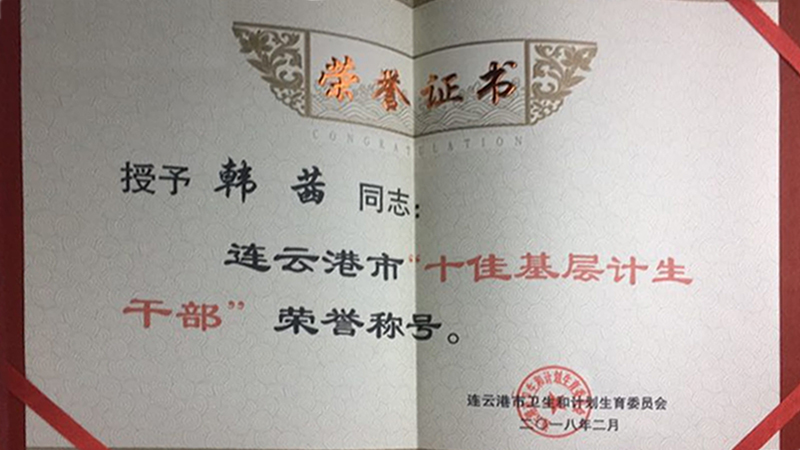 4月13日,从连云港市2018年度卫生计生工作会议上传来喜讯,东辛农场有限公司韩茜被授予连云港市十佳基层计生干部荣誉称号。