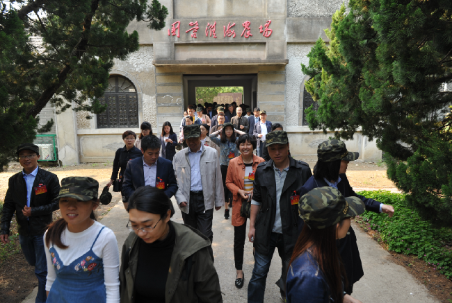 5月3日下午,江苏农垦青年员工论坛及各单位工会主席、部分老领导等一行近200人,在集团公司工会主席佟晓廷的带领下,到农建四师暨淮海农场历史陈列馆参观学习。