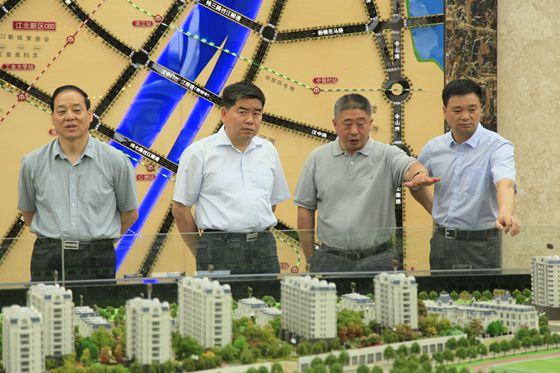 6月5日上午,陕西省农垦集团党委书记、董事长郭剑、党委副书记、纪委书记、工会主席张富祥一行到通宇房地产公司调研。集团公司党委书记、董事长魏红军、副总经理姜建友陪同调研。郭剑一行先后来到林景熙园、林景象山墅院,观看楼盘模拟沙盘、电视宣传片和项目工地,现场听取工作人员的介绍。