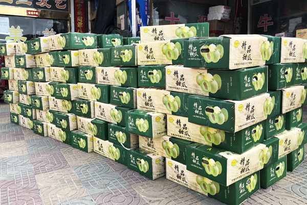 在�港农场快递发货点,瓜果蔬菜经济人杨宏林每天都要打包100多箱的玉茹甜瓜发往全国各地,其中有不少回头客,也有不少老客户介绍来的新客户。“客户从微信上下单,我到瓜农地里现摘现卖,保证甜瓜的口感和新鲜度。”杨宏林说,从去年开始他就发现微信圈的甜瓜销售也不错,象他这样每天通过微信发快递销售甜瓜量比较大的经济人农场就十几个。