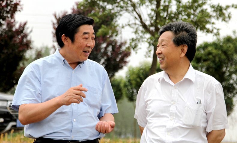 期间,恰逢中国工程院院士、著名水稻专家张洪程到黄海分公司,检查两位常驻博士的课题研究进展情况。 “老友相见分外高兴”—— 胡兆辉与张洪程高兴的拉起了手、相互问候。随即就农业科技创新、农产品市场、成果转化应用、生态保护及农产品质量管理等话题进行广泛深入探讨。胡兆辉感谢张洪程院士为江苏农垦农业现代化建设作出的突出感谢,希望继续以黄海分公司院士工作站为平台,将更多的农业高新技术研究课题落户农垦。农垦也将进一步发挥诸多优势,携手努力,突破应用“瓶颈”,将科学技术真正转化为生产力,更好地担当起“国家粮食安全”的社会责任。