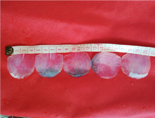 “到底是一条大鱼,鱼鳞比1元硬币还大呢!”一围观群众特意到附近裁缝店里找来一把布尺,从鱼身上取下五个鱼鳞,将五个鱼鳞紧密地靠在一起,排成一线,然后用布尺量了一下,五个鱼鳞长近21厘米,平均每个鱼鳞直径有4厘米多。