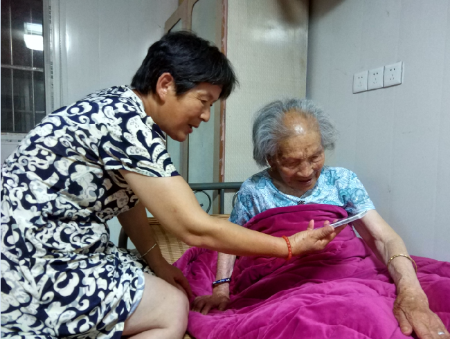 老人平时喜欢吃零食。唐淑兰特地拿了一根粗粗的馓子,递给老人吃。果然,老人嘴中传来“咯嘣咯嘣”的响声。唐淑兰还打开手机,让我们看老人啃吃玉米棒的视频,看到老为吃得津津有味的样子,我们为老人有如此身体和牙口感到震憾。