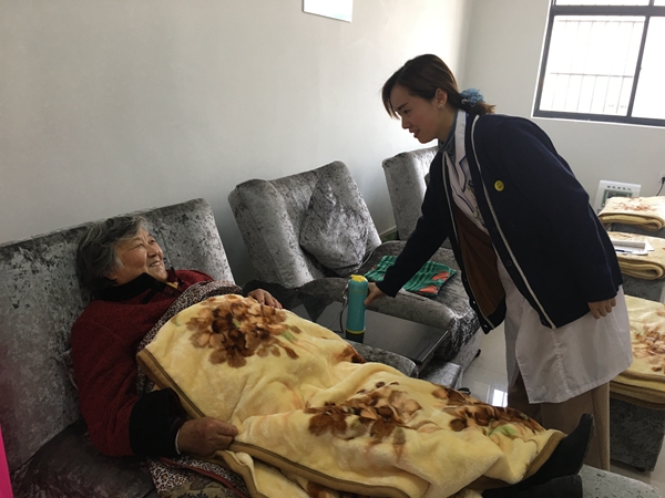 居家养老服务站还专门配有医疗人员负责给老人提供测量血压、血糖、保健按摩、康复训练和健康咨询等服务。