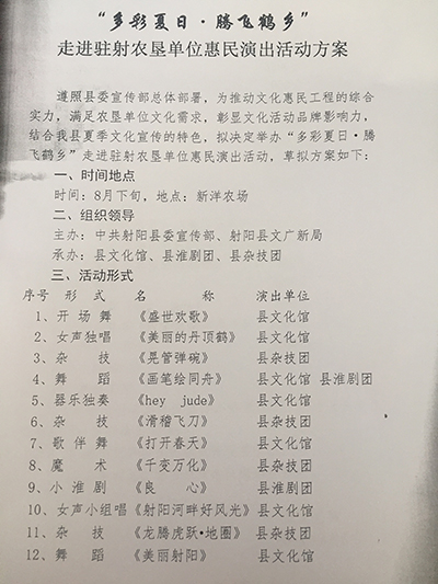 据悉,“多彩夏日·腾飞鹤香”走进注射农垦单位惠民演出由射阳县委宣传部、县文广新局主办,县文化馆、县淮剧团、县杂技团承办。当天所表演的节目皆是在国内国际中斩获大奖的精品,将吸引大量职工居民驻足观看。