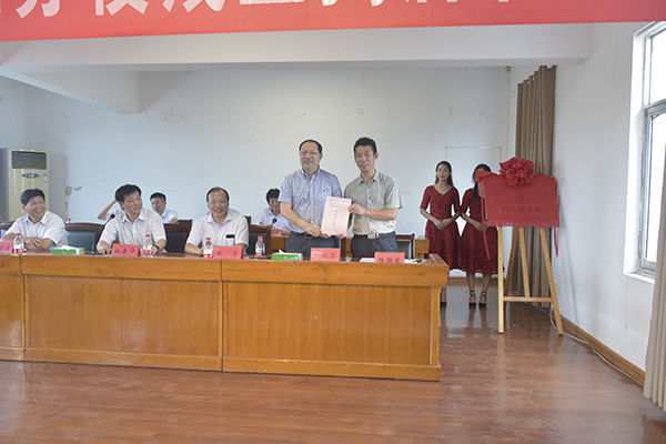 张大冬和白马湖学校总校长工杨国东代表合作双方签定联合办学协议,姚春华、咸勇为淮安市新安小学白马湖分校揭牌。