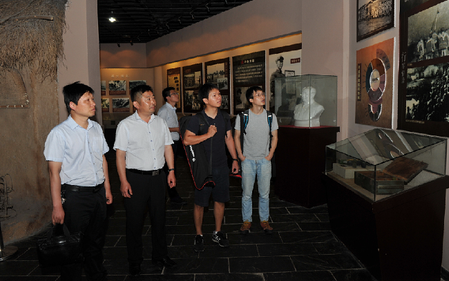 澎湃新闻采访组及随行人员等一行首先参观了农建四师陈列馆,实地参观了淮海农场军垦传统教育基地和了解农场建场初期农建四师的史实情况,然后采访组一行深入到淮海农场群乐小区百岁老人张瑞瑞的家中采访。