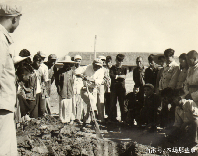 正因为江希友发明的“‘江大锹’挖土法”在全农建四师的成功推广和在水利战役中的优良表现,1953年3月17日,他被农建四师表彰为"特等功臣"。并成为淮海农场建场60周年的10大知名人物。图一是江希友在水利工地作挖沟示范。