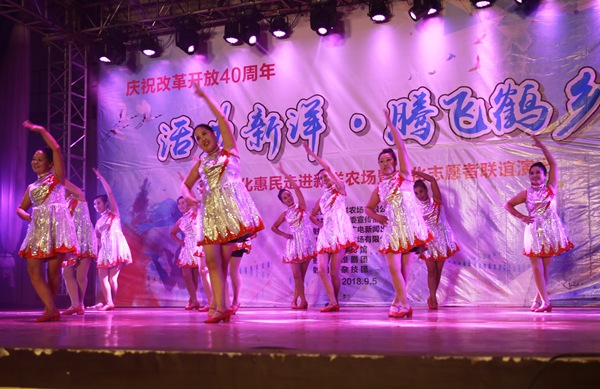 为庆祝改革开放40周年,积极推动驻射农垦企业文化纳入射阳文化发展大地图工作,9月5日晚7点半,新洋农场有限公司与射阳县文广局联合举办“活力新洋 腾飞鹤乡”联谊演出。新洋领导陈守军、潘元海、戴学林、仰海洲、王煜明、贺春峰,县文广局局长贺琰,副局长周克明,以及新洋职工居民近800人观看演出。