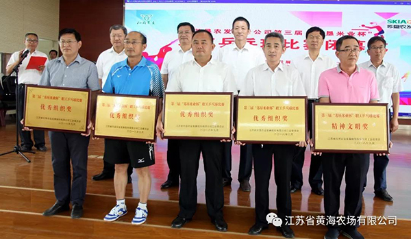 日前,苏垦农发股份公司第三届“苏垦米业杯”乒乓球比赛圆满落幕。新洋分公司副总经理仰海洲出席颁奖仪式。