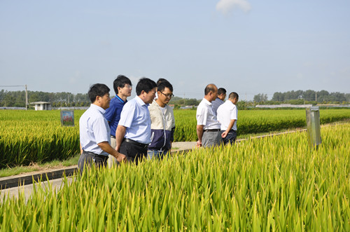 会议期间,苏志富一行还深入到大华育种研究院淮安研究所的试验田边察看了华粳8号等水稻品种的长势长相,听取了相关工作人员的情况介绍,并针对水稻生产如何进一步提高产量、提高效益提出了要求。