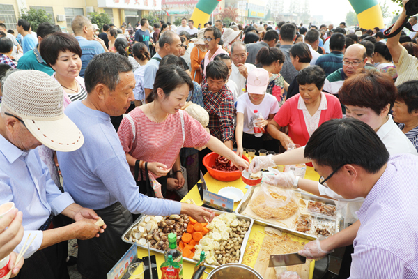 “丰收盛宴”美食品尝。活动现场,公司所属各单位还精心准备了种类丰富的特色美食,供观众免费品尝。大家一边兴致勃勃地观看文艺节目,一边开心地品尝着各单位职工烹制的美食饮品。茶叶草鸡蛋、牡丹油酸奶、彩色果蔬面条、盐水虾、白斩鸡、炒田螺、煮菱角、爆玉米花……人们品尝的食材多数是临海自产的农副产品。几十种特色佳肴,各有各的味道,真是一场美味的盛宴!