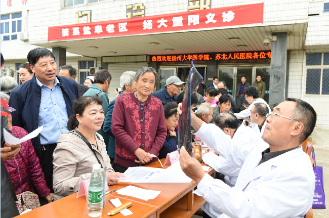 今年的重阳节是分外温暖。虽然当天下午来自扬州大学8名离退休的老专家只有2个半小时的义诊活动时间,但淮海农场社区还是有300多人前来参加诊治,特别是老年朋友们接受了病史分析、健康检查和咨询问诊之后,个个喜逐颜开,开心不已,他们纷纷表示此次义诊对他们的帮助很大,感谢来自扬州大学医学院的离退休专家来淮海提供的医疗服务,不仅为他们的身体健康提供了保障,更了解了如何养生和保健的知识,让他们在重阳节这一天,感受到晚年生活的温暖和幸福。