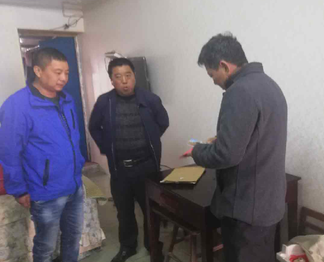 一分场社区领导班子成员通过走访调研了解到于夕平这个家庭的实际情况后,把他列入到农场建档立卡精准帮扶对象。淮海农场有限公司工会特地以一名科级干部、一名管理人员以“2+1”精准帮扶的形式,对这个家庭采取精准帮扶,并争取相关政策进行支持,鼓励病人树立起健康养生的信念和抗击病魔的信心。近日,当精准帮扶小组成员陆加荣和一分场社区主任王健了解到该家庭的特殊情况和再一次变故后,立即会商倡议单位干部职工给这个风雨飘摇的家庭奉献爱心。经过倡议宣传,全分场广大干部职工纷纷响应,大家纷纷解囊相助,以爱心来帮贫济困,全分场社区84名干部职工共募捐善款8630元,人均近100元,也让这个困难家庭再一次感受到农场社区的温暖。图为一分场社区领导上门慰问并转交捐款时的镜头。