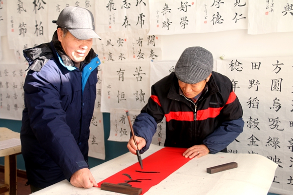 眼前这几位正围在案台前挥泼墨、热情创作的人,都是新洋资深的书法爱好者们。他们或坚持书法,或坚持绘画技艺练习了几十年,每年都有众多优秀作品获得省市县书画比赛的表彰。每年临近春节,他们还为新洋的职工居民“义写春联”,营造浓浓的书香节日氛围。