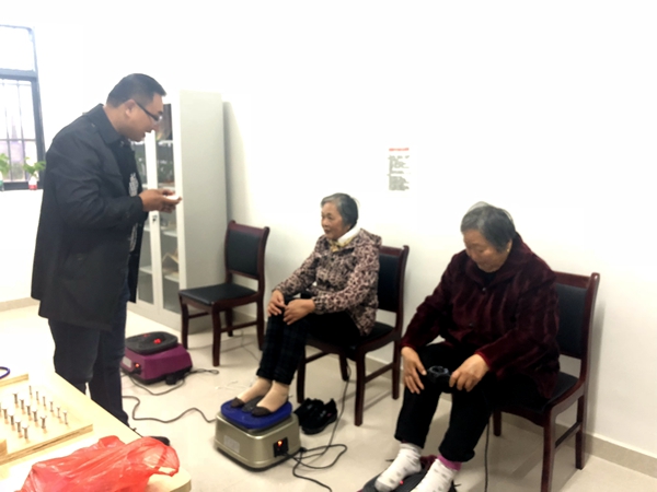 “两位奶奶,下雨天您们去哪呀?”主任问道。“我们去居家养老服务站活动活动,那有按摩椅、颈椎按摩器、理疗仪,我去了一个多月,受益很多,以前老是腰腿酸疼,现在通过按摩,感觉好很多,不聊咯,我们姐妹俩赶紧去哦……”路上偶遇的社区副主任、党总支书记陈葛祥与70多岁老人龚亚珍姐妹俩笑盈盈的相互问候着。