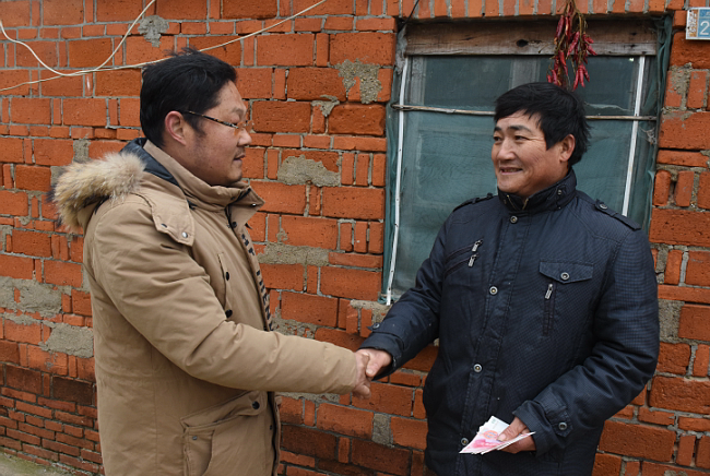 12月7日,大雪,今天突然的降温让大雪这个天气更是异常寒冷,而在淮海农场四分场社区建档立卡贫困户许忠祥的心中,让他觉得这个季节却是很温暖。因为让他感到意外的是,四分场社区职工代表、私企老板顾权东今天来到许忠强家,拿出1000元现金红包交给了他,并关照他天气冷了,要多添加点衣物,吃饱喝暖,注意身体。