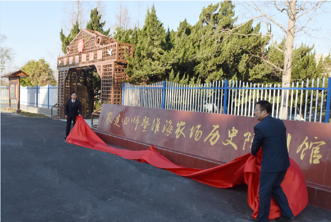 12月29日上午8点58分,农建四师暨淮海农场历史陈列馆二期工程举行开馆仪式,淮海农场有限公司党委书记王进强致辞,纪委书记、工会主席孙国祥主持开馆仪式。淮海领导班子全体成员,片区财务总监,离退休老干部代表,驻场单位主要负责人,各分场社区科级助理以上人员、干事,场直各单位负责人,机关及社区本部全体人员参加了开馆仪式。