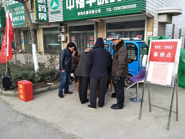 1月1日早上,室外温度还在零下,而新洋农场有限公司城西居委会纬四西与经五路交叉口处正从音箱传来“爱的奉献”温暖人心的歌声,吸引着周围广大居民。原来是城西居委会党支部党员骨干会同居民委员会委员们一起冒着寒冷晨风在进行响应农场公司工会“人人奉献爱心,共建幸福家园”倡议书募捐活动。