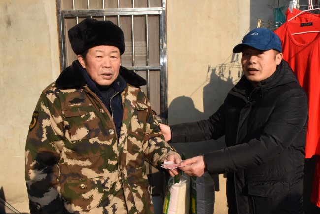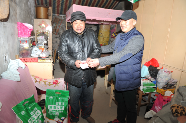 此前,为较好地掌握本居委会职工居民的生活状况,常年在外奔波的城西居委会居民陆同联经常与本辖区居委会主任臧成龙保持联系,陆同联在去年2月12日隐姓埋名为农场社区精准帮扶建档立卡贫困户严建明送上1000元现金和2袋大米;去年12月3日为身患重病致贫的朱怀兵送上1000元现金的基础上,今年在新春来临之际,又一次伸出援手,为这两个特殊家庭再次奉献爱心,各送去2袋大米和500元现金,并带信要求他们好好保养身体,享受现今生活的美好。