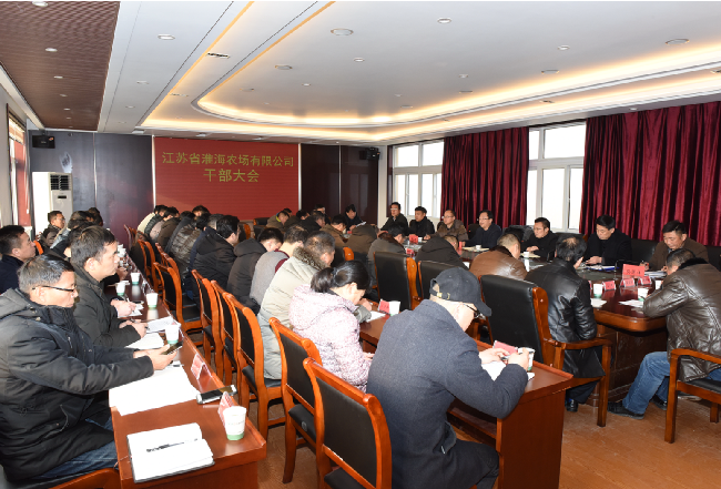 2月1日上午,淮海农场有限公司召开干部大会,认真传达贯彻落实集团公司2019年工作会议精神,农场公司领导王进强、单祥忠、王灿明、孙司正、陈海军、孙国祥及第四片区财务总监李成军出席会议,各分场社区、场直各单位、机关各部门副科级以上管理人员参加会议。会议由党委书记王进强主持。