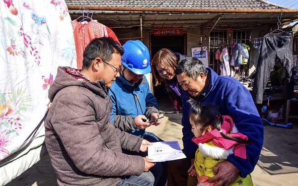 (图为县供电公司员工在职工居民家中办理用户过名业务)