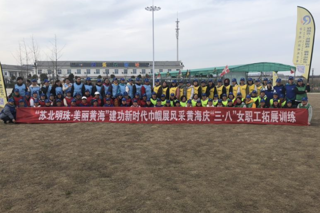 为进一步增强团队凝聚力和信任感,激发个人潜能、培养积极的态度。 3月8日,黄海组织女职工一行100余人在盐城探路者拓展中心开展了素质拓展训练。