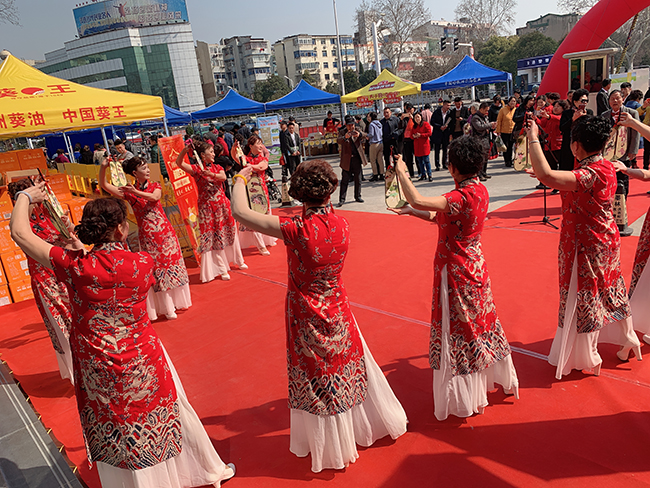 展销会上,知青艺术团倾情演唱了《知青功劳永不忘》,表演了脱口秀、旗袍秀、男女声独唱、笛子独奏等节目,将会场气氛推向高潮,吸引大批镇江市民前来选购。