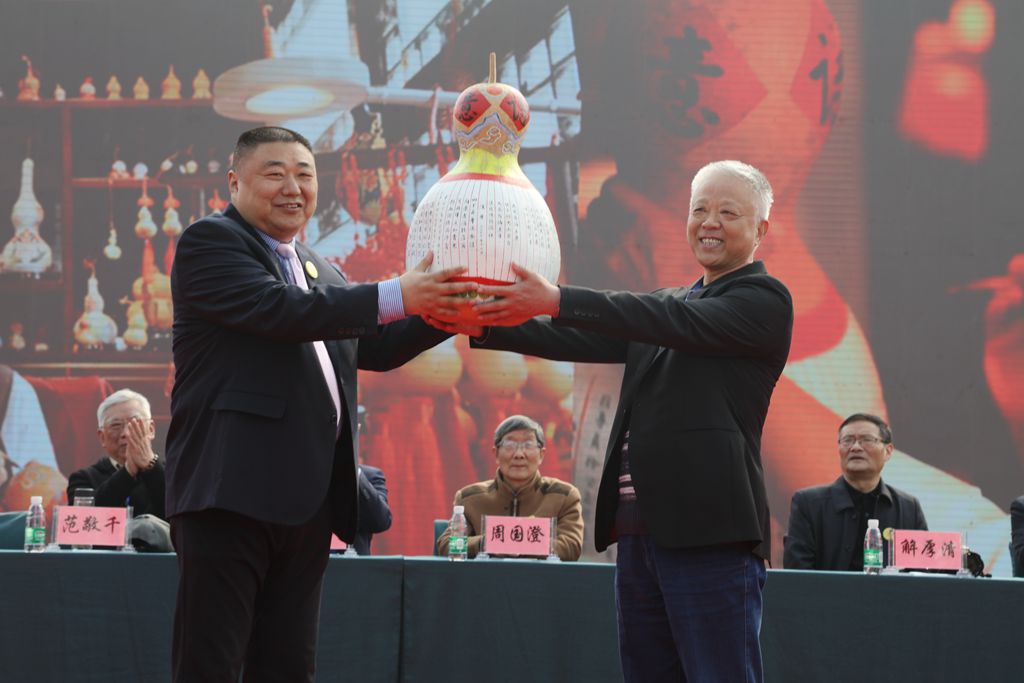东辛知青艺术家,被誉为“金陵葫芦张”的非遗传承人张苗先生,为农场专门创作了一件艺术作品——彩绘葫芦。受张苗先生的委托,由知青代表李晓东先生向农场赠送彩绘葫芦。东辛党委书记韩中书向其颁发收藏证书和纪念牌。