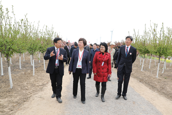 开幕式结束后,与会领导和嘉宾兴致勃勃地参加了“亲近海棠”游园活动。漫步在“十里海棠”——观赏海棠科技产业园,竞相绽放的五十多个品种的海棠花,千姿百态,娇艳欲滴,吸引大家驻足观赏。