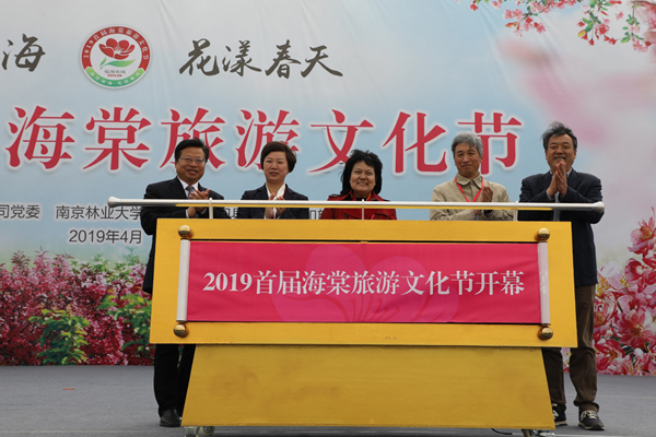 开幕式上,刘克英、吴冈玉、袁军、王良桂、黄礼庆共同启动开幕卷轴,拉开了2019首届海棠旅游文化节的序幕。
