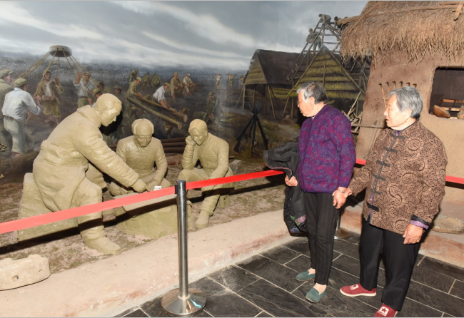 “这个人叫某某某,那个人是张某某,你看他们笑得多开心啊!”只见两位老人在陈列馆中不时地驻足观看展墙上的照片,不时地指指点点,看得出她们很认真,一幕幕照片的生产场景,仿佛把她俩又带进了建场初期的战斗场景。