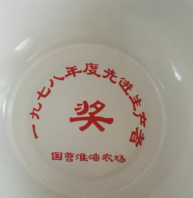 据了解,这只洗脸盆的主人是无锡知青朱正才1978年在国营淮海农场红旗分场十四连试验班当班长时,在年终通过层层评选,最张获得先进生产者所得来的荣誉。据悉,朱正才在淮海农场兵团期间,就得到过3只同样的洗脸盆,其他2只在使用过程中,一直用旧了破了才扔掉。而这只脸盆因为还没有使用时,1979年3月就回城了。想起从学校毕业就来到了淮海农场,并在这片土地上战天斗地的10年岁月,把最好的青春岁月都留在了淮海农场,现在回城了也没有什么有值得纪念意义的东西,所以这只没有用过的洗脸盆就被夫妻俩给珍藏了起来。