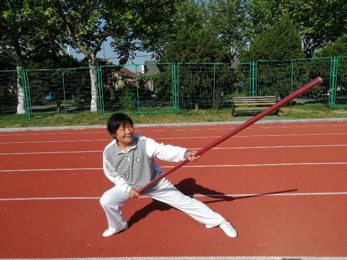 别看她是位七旬老人,可赵梅生的文化生活却丰富多彩。每天早晨和队友们一起晨练后,她再跟其他队友一起练少林棍功夫,这才几天,已经学得有模有样的。