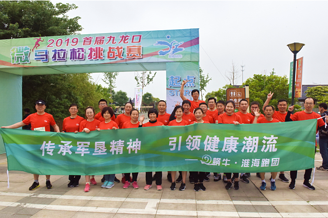 为展示好淮海农场有限公司军垦人的形象,淮海参赛选手在比赛前一起拿出由蜗牛•淮海跑团“传承军垦精神 引领健康潮流”的横幅助阵。选手们全部换上了由组委会分发的统一红色T恤比赛服装,正面佩带有2019首届九龙口微马拉松挑战赛字样的号牌,背后印有九龙口标识、“原生态 慢生活 深体验”字样的红色T恤格外引人注目。在比赛过程中,淮海27名参赛选手完成并途径九龙口大道、乐耕农苑、水禽沙洲、九龙花海、码头广场、访龙长堤、芦荡客栈、湿地宣教馆、龙文化博物馆、渔耕慢道、游客中心等旅游节点中的全部赛道,在浏览旅游风景区的风采同时,也体味到这次微马拉松挑战赛健身运动给来的快乐。图为比赛瞬间和合影时的镜头。
