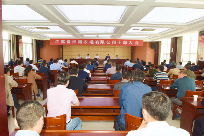 5月23日上午,省农垦集团公司党委副书记姚准明出席淮海干部大会并发表讲话,集团公司党委委员、组织部长杨义林在会上宣读集团公司党委对淮海领导班子调整的决定:王进强不再担任淮海农场有限公司党委书记职务,单祥忠同志任淮海农场有限公司党委书记,王灿明同志任淮海农场有限公司党委副书记、董事,苏垦农发淮海分公司总经理,陈海军同志任淮海分公司工会主席,孙国祥同志任淮海农场有限公司监事。农场公司党委书记王进强主持会议并作离职感言,新任农场公司党委书记单祥忠,农场公司党委副书记、董事、分公司总经理王灿明分别作表态发言。农场公司副总经理孙司正,纪委书记、工会主席孙国祥,党委委员陈海军及片区财务总监李成军等出席,淮海科级助理以上人员及机关全体人员参加会议。