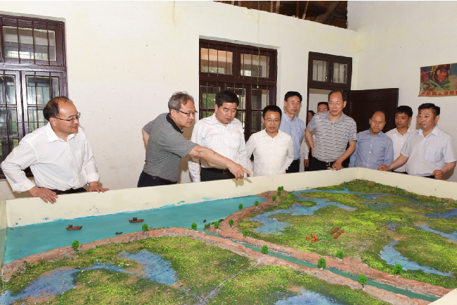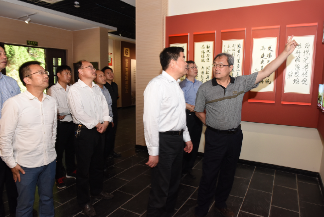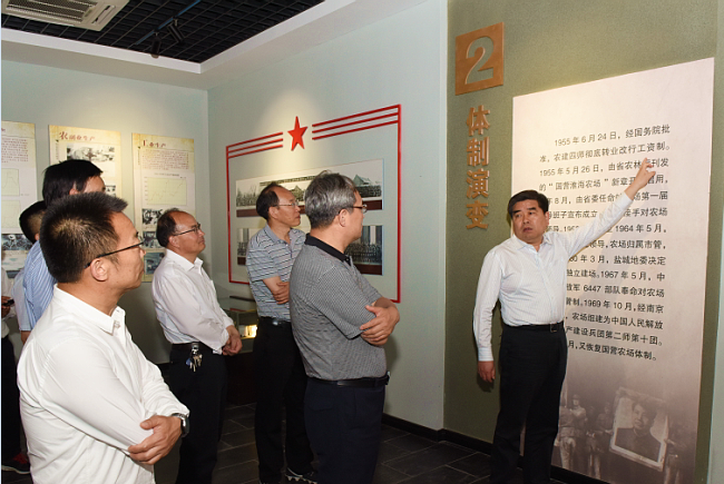 沿着农建四师纪念碑雕像,毛泽东主席关于生产待命、建设农场的命令碑文和农建四师暨淮海农场历史陈列馆,邓庆海看得认真,听得仔细,不时记下珍贵史料。农建四师纪念碑雕像的含义,毛主席命令碑文,陈列馆中的许多老照片、老物件和军垦文化的情况介绍,邓庆海都了然于心,对有的图片、文字,他还掏出手机拍照留存。邓庆海强调,农建四师是一支英雄的部队,陈列馆内史料丰富、内容详实,是一个军垦传统文化教育的好平台。今后要继续发挥好陈列馆的红色教育作用,继承发扬“艰苦奋斗、勇于奉献、开拓创新”的苏垦精神,让更多人的思想在这里得到军垦传统文化的洗礼。