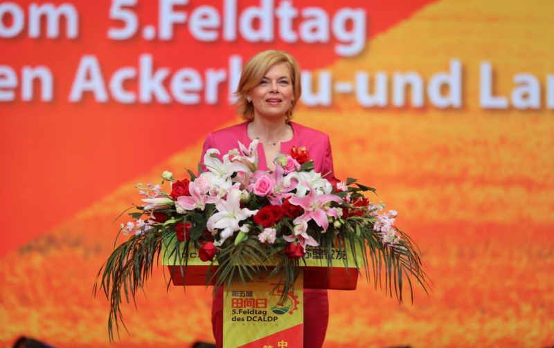 在中德两国有关部门的关心指导和共同努力下,示范园自启动建设以来,已在技术培训、协同创新等方面取得了显著成果。希望在一期项目的良好基础上,继续精心谋划推进二期项目,努力形成更加丰硕的合作成果。江苏省政府将进一步加强与德国的友好交往,一如既往地支持中德农业示范园建设发展。我们诚挚地期盼双方进一步增进相互了解,扩大务实合作,实现互利共赢,携手共创美好未来。她指出,气候变化,保护生物多样化是我们共同应对的问题,不仅在国家层面,在全球范围也是这样。农业是最重要的技术,双方都非常重视食品安全。作为此次访华的第五天,田间日活动是可持续农业发展很好的象征,希望通过此次活动可以借鉴示范园的先进经验,同时给示范园带来新的理念。中德双方高度重视农业的可持续性,并通过进一步交流双方的经验和知识,共同推进农业的可持续性发展,更好的为社会作出积极贡献。