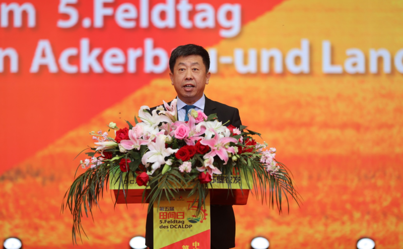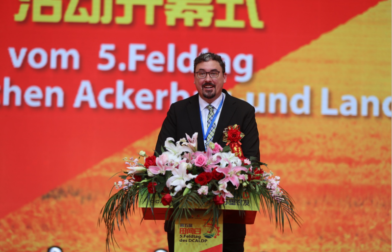 王宏前代表农业农村部对中德示范园第五届“田间日”活动的成功举办表示热烈祝贺!他说,中德农业合作是中德双边合作的重要领域,在两国领导人的共识引导下,2015年3月,作为中德农业双边合作核心平台的中德农业中心启动运行,中德农业示范园是中德农业中心框架下,两国深化农业领域合作的重要项目。4年以来,在双方的共同努力下,示范园区在创新耕作模式、改善土壤活力、提高种植效益、强化科技培训等方面积累了宝贵的合作经验,取得了丰硕的合作成果,示范园对实践与推广环境友好、健康土壤的生态环境和管理技术,推动农业绿色发展方面作出了良好示范,可圈可点、可喜可贺。