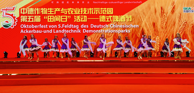 继中德作物生产与农业技术示范园第五届“田间日”开幕之后,6月16日,中德示范园第五届“田间日”活动成功举办。在德式啤酒宴上,苏垦农发股份公司总裁王立新致祝酒词,黄海农场公司党委书记、苏垦农发黄海分公司总经理、中德示范园主任贺在锐致欢迎辞,中德示范园德方专家霍斯特·布恩格主持,苏垦农发股份公司副总裁陈培红、黄海农场公司董事长、总经理李卫东、GFA咨询集团有限公司项目经理安德列斯·伽木措、中德农业中心德方主任周裕耕等中德双方领导和官员出席活动。出席活动的还有:项目咨询机构领导、项目合作商代表、集团公司和苏垦农发公司相关领导以及黄海领导班子成员、中德示范园领导和专家以及媒体记者共200余人。