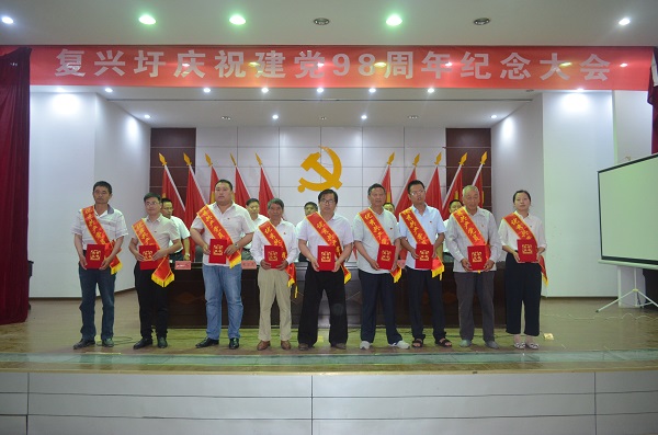 在中国共产党成立98周年到来之际,为了扎实推进“不忘初心、牢记使命”主题教育,同时表彰先进,树立榜样,,更好地发挥基层党组织的战斗堡垒作用和复兴圩广大党员的先锋模范作用。6月26日上午,复兴圩农场有限公司党委隆重召开庆祝建党98周年暨七一表彰大会。农场公司党委班子成员出席会议,公司全体在职党员、入党积极分子及部分退休老党员参加了会议,会议由党委副书记杨生力主持。