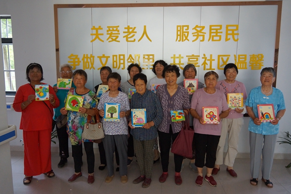 创作完后,老人们纷纷用自己的作品和工作人员一起装扮起服务中心,五颜六色的创意贴画,为这炎热的夏天又增加了一抹色彩。