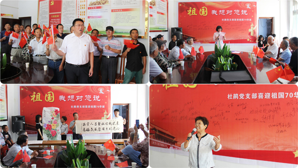 为迎接新中国70周年华诞,重温光辉历程,弘扬优良传统,深化“不忘初心,牢记使命”主题教育,9月16日,杜鹃党支部与杜鹃分工会联合举办“祖国,我想对您说”喜迎国庆活动,为我们伟大的祖国送上党员群众最诚挚的祝福,祝福伟大祖国在伟大的新时代更加繁荣昌盛,人民幸福安康。活动分为“我和祖国心连心”的签名、“我和祖国共奋进”的故事、“我和祖国共成长”的诵读、我为祖国写华章、我为祖国放声唱等五个环节。
