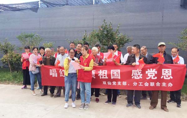 为庆祝中华人民共和国成立70周年,深化“不忘初心,牢记使命”主题教育,弘扬践行农垦精神,唱响中国特色社会主义、伟大爱国主义主旋律,近日,�港农场社管会双仙党支部联合双仙工会举办“唱红歌、颂祖国、感党恩”国庆庆祝活动。活动分为“赏园同行 祝福满满”、“爱国心、奉献情、奋斗行”、“讴歌新时代 出彩�农人”、“奋进新时代 文明我出彩”和“唱红歌、颂祖国、感党恩”五个部分。