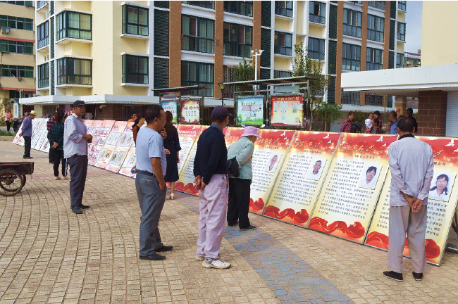 虽然展板上6个人的文明新事先进事迹都不尽相同,但这些事迹中所传达出的精神却是相同的,充分发挥了道德模范在公民道德建设中的示范引导作用,正是这些“正能量”能让社区职工居民感受到来自我们身边职工和社会的善意,也让他们受到感染与鼓舞,进而让更多的农场职工居民积极参与到在今后的文明创建建设中去。