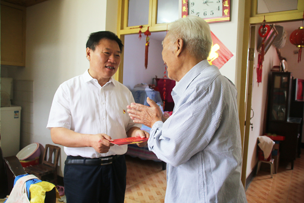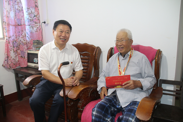 党委委员仰海洲走访慰问了姚得如、谢兆凤两位老人,给老人送上慰问金,并介绍道,为体现对创建新中国作出贡献的老同志的关怀和照顾,离休干部在享受护理费基础上,还将享受高龄护工费补贴。让老干部、老党员充分感受到政治上的关心、精神上的关怀和生活上关爱。