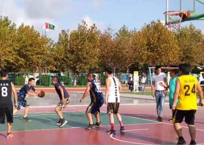 为丰富员工文体娱乐生活,增强团队协作精神和友谊交流,今年国庆期间,淮海农场有限公司的篮球队员与临近的滨海港镇,在淮海农场职工休闲体育广场内的篮球场上,举行了一场精彩的篮球友谊赛。