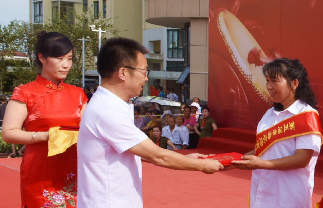 与朱锁珍的交谈中,我们真切地感受到,当不幸降临这对夫妻的时候,朱锁珍选择了不离不弃,生死相依。她经常说:“我其他都不要,只要拥有我一个完整温馨的家,对此,我就知足了。” 图为朱锁珍接受农场公司党委书记单祥忠颁发的荣誉证书时的镜头。